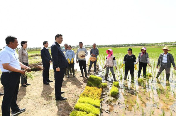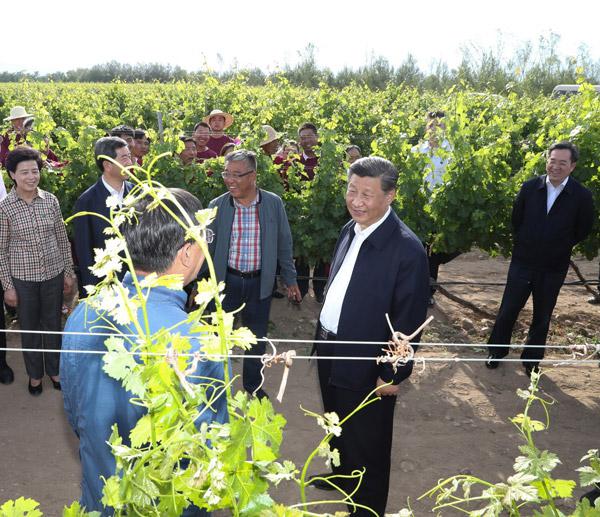 習(xí)近平總書記9日在銀川考察調(diào)研。他先后來到賀蘭縣稻漁空間鄉(xiāng)村生態(tài)觀光園、賀蘭山東麓葡萄種植園,了解當(dāng)?shù)匕l(fā)展特色農(nóng)業(yè)產(chǎn)業(yè)、加強賀蘭山生態(tài)保護等情況。 (攝影:新華社記者 鞠鵬、謝環(huán)馳、王曄、燕雁) |