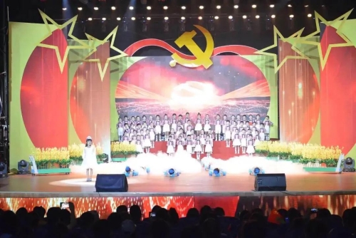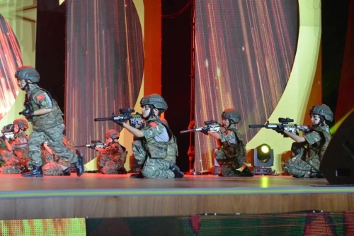 演出共分為三個篇章:“迎建黨百年、傳兵工精神”“憶長征歲月、夢璀璨中國”“承紅色基因、展幼教初心”。演出過程中掌聲不斷,高潮迭起,有合唱,有情景劇,有舞蹈,有快板,全科共361名演出人員,孩子們個個落落大方,神采飛揚,《在燦爛陽光下》《燈火里的中國》《兵工情》,銘記紅色歷史,引導(dǎo)孩子們從小繼承革命傳統(tǒng),傳承兵工精神”。《春天的芭蕾》《我愛北京天安門》《水墨丹青繪祖國》《長征路上》一首首歌曲鏗鏘有力,一段段回憶激蕩人心,師幼同臺唱出了對黨對祖國的熱愛和崇敬之情,讓人們感受到孩子們爭做新時代紅色接班人的信念、決心?!栋褠郢I給咱的娃》《未來的保衛(wèi)者》《炫彩青春》引導(dǎo)孩子們從小繼承革命傳統(tǒng),傳承紅色基因,讓紅色教育點亮童年,讓紅色精神代代相傳?!皞鞒屑t色基因,紅色精神代代相傳。”