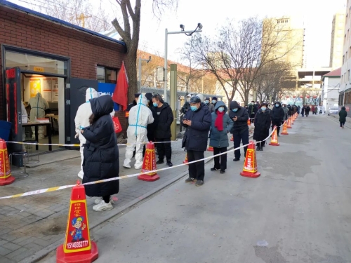 當(dāng)前,內(nèi)蒙古自治區(qū)疫情防控形勢(shì)依然嚴(yán)峻,包頭市中風(fēng)險(xiǎn)地區(qū)已達(dá)7個(gè)。面對(duì)疫情,中國(guó)兵器工業(yè)集團(tuán)有限公司駐包頭單位積極行動(dòng),支援當(dāng)?shù)匾咔榉揽?,共筑安全防線。 凌晨集結(jié),投身核酸檢測(cè)工作 來自一機(jī)集團(tuán)、北重集團(tuán)、材料院52所包頭事業(yè)部的共計(jì)500余名志愿者密切配合包頭市防疫部門、街道社區(qū)進(jìn)行全員核酸檢測(cè),同時(shí)做好信息登記、維護(hù)秩序、宣傳政策等工作,確保核酸檢測(cè)全覆蓋。2月20日凌晨,在零下20度的寒風(fēng)中,志愿者全部在支援地集結(jié)到位,做好核酸檢測(cè)前的相關(guān)準(zhǔn)備。 一機(jī)集團(tuán)黨員突擊隊(duì) 志愿者們搭建臨時(shí)帳篷,用圍擋封控家屬區(qū),配合醫(yī)護(hù)人員組織居民排隊(duì),有序進(jìn)行核酸檢測(cè)。檢測(cè)工作開始后,志愿者們用溫暖的話語安撫居民們的情緒,引導(dǎo)居民有序入場(chǎng),檢測(cè)居民體溫,登記核對(duì)信息,轉(zhuǎn)運(yùn)檢測(cè)樣本。為了盡可能提高檢測(cè)工作效率,志愿者在各條核酸檢測(cè)通道指導(dǎo)群眾掃碼登記,一對(duì)一幫助老人、兒童等不便使用智能手機(jī)的群眾解決困難,使其能順利進(jìn)行核酸檢測(cè)。 逐戶上門,確保應(yīng)檢盡檢 為確保所支援地區(qū)完成全員核酸檢測(cè)工作,志愿者自愿組隊(duì),挨家挨戶上門通知,進(jìn)行人員核對(duì),對(duì)于處在隔離期的居民以及行動(dòng)不便的老人、兒童采取了入戶核酸檢測(cè)。