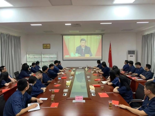 ▲特能集團團委組織團員青年收看現(xiàn)場直播