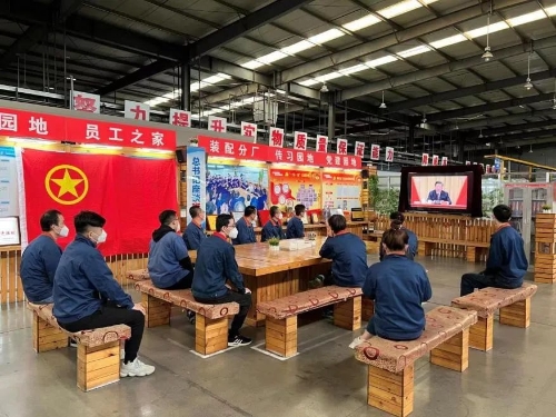 ▲和平重工集團團委組織團員青年收看現(xiàn)場直播