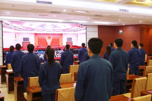 ▲豫西集團團委組織團員青年收看現(xiàn)場直播