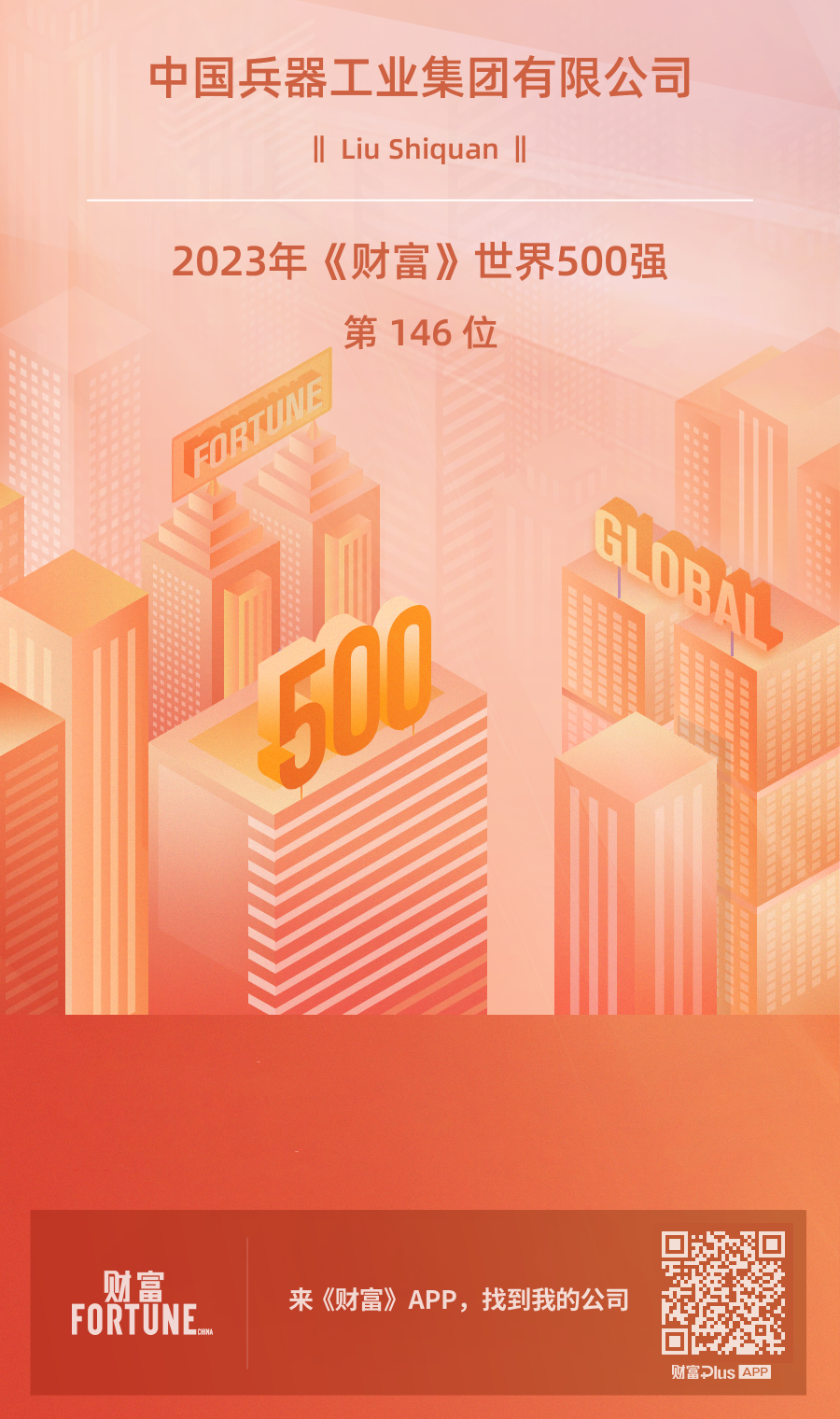 8月2日,2023年《財(cái)富》世界500強(qiáng)排行榜正式發(fā)布,中國兵器工業(yè)集團(tuán)有限公司以826.89億美元的營業(yè)收入排名第146位,連續(xù)第14年入榜。