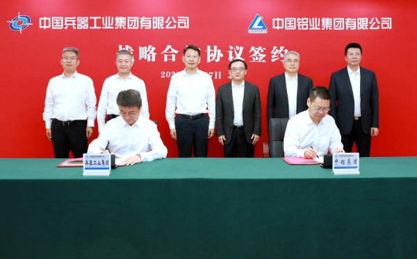 6月27日,中國兵器工業(yè)集團(tuán)有限公司與中國鋁業(yè)集團(tuán)有限公司在京簽署戰(zhàn)略合作協(xié)議。集團(tuán)公司黨組書記、董事長程福波,總經(jīng)理、黨組副書記馬云雙與中鋁集團(tuán)黨組書記、董事長段向東,總經(jīng)理、黨組副書記王石磊進(jìn)行了座談交流并共同見證簽約。集團(tuán)公司黨組成員、副總經(jīng)理閆哲、史志榮;中鋁集團(tuán)黨組成員、副總經(jīng)理田永忠、魏成文出席活動。閆哲、田永忠分別代表雙方簽署協(xié)議。