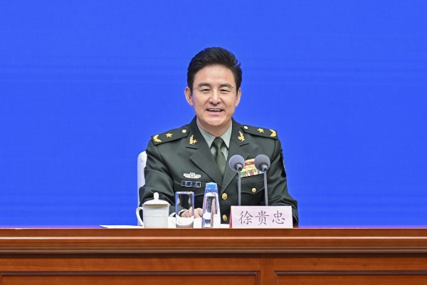8月20日,國務(wù)院新聞辦公室在北京舉行新聞發(fā)布會(huì),閱兵領(lǐng)導(dǎo)小組辦公室副主任、中央軍委聯(lián)合參謀部作戰(zhàn)局少將副局長吳澤棵,中國人民解放軍中部戰(zhàn)區(qū)閱兵指揮機(jī)構(gòu)辦公室常務(wù)副主任、政治工作部少將副主任徐貴忠介紹閱兵準(zhǔn)備工作有關(guān)情況,并答記者問。這是徐貴忠在介紹情況。